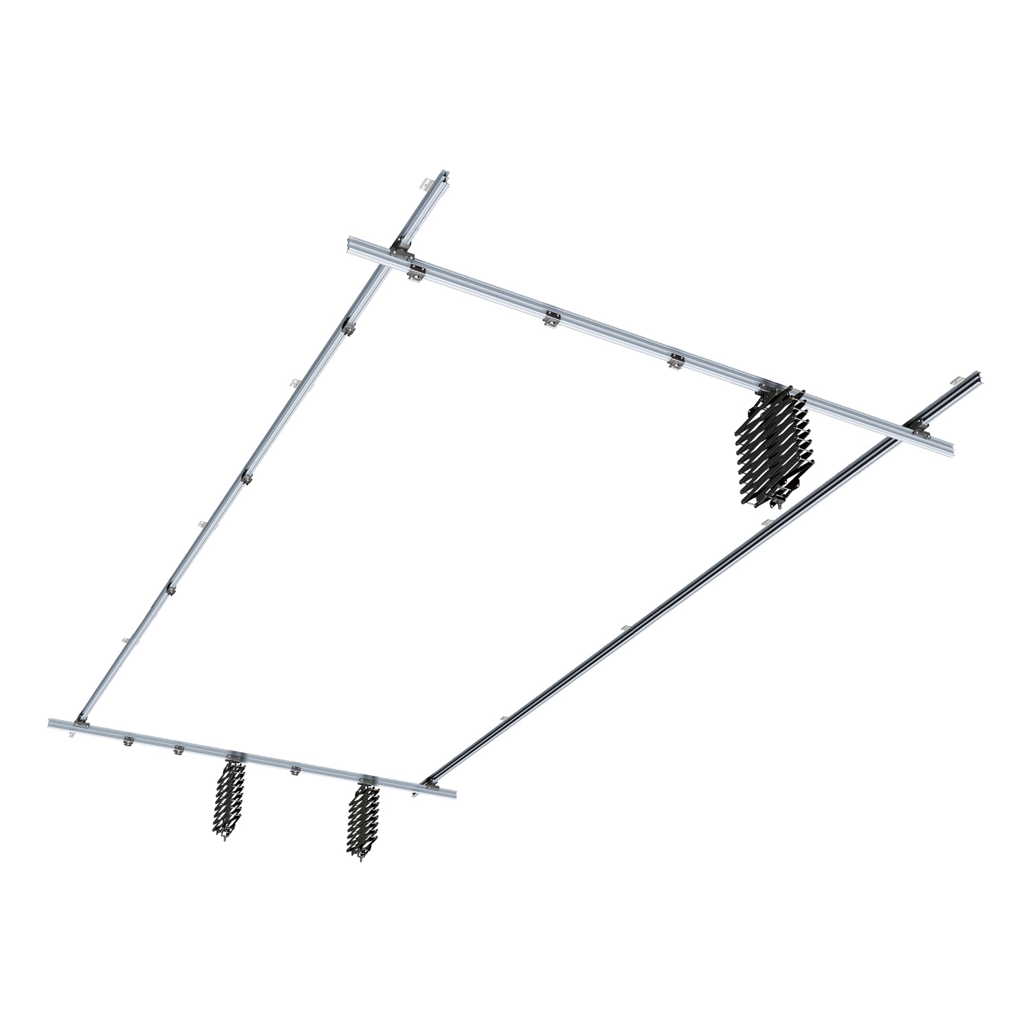 Economy-Schienenprofile bieten sichere, leichtgängige Verstellmöglichkeiten bei guten Belastungswerten. Das Kit lässt sich durch zusätzliche Scheren und Brücken erweitern.
