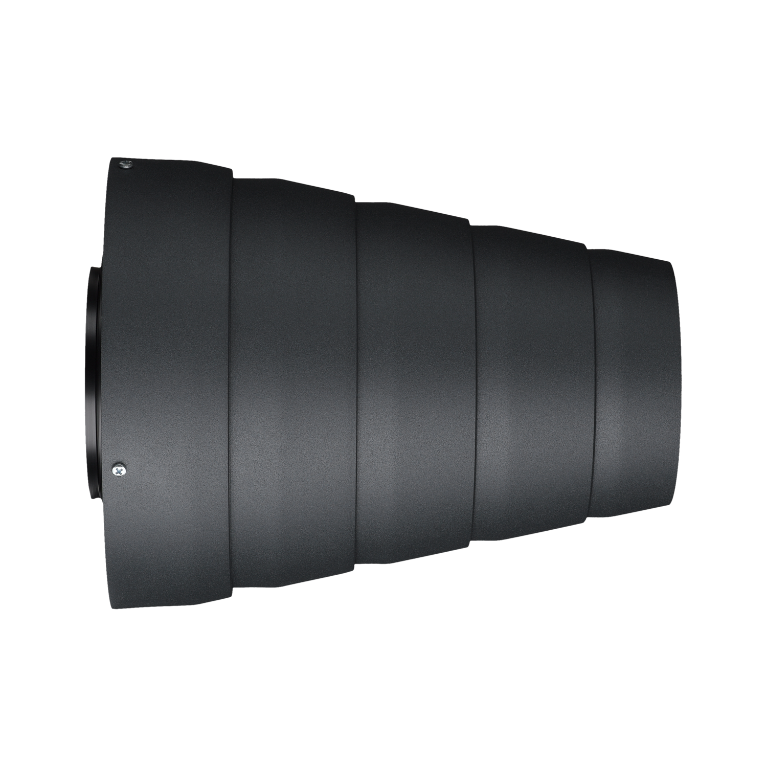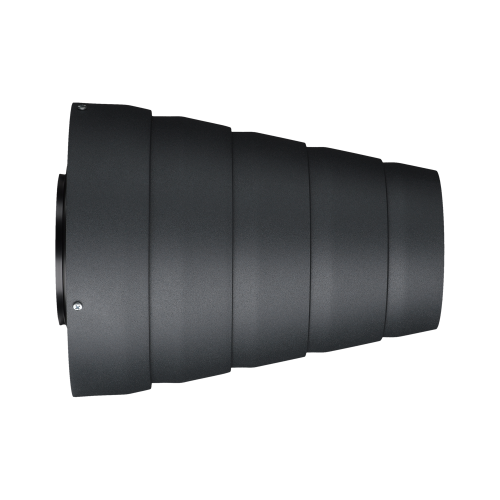 Der Engstrahlreflektor - auch bekannt als "Snoot" - sorgt für eine starke Reduktion des Leuchtkreises. Der Effekt ist ähnlich dem einer Wabe, dabei aber mit klar definiertem Hell-/Dunkel-Übergang. Im Vergleich zu Waben bzw. Akzent Tube gibt es eine deutlich geringere Lichtausbeute.