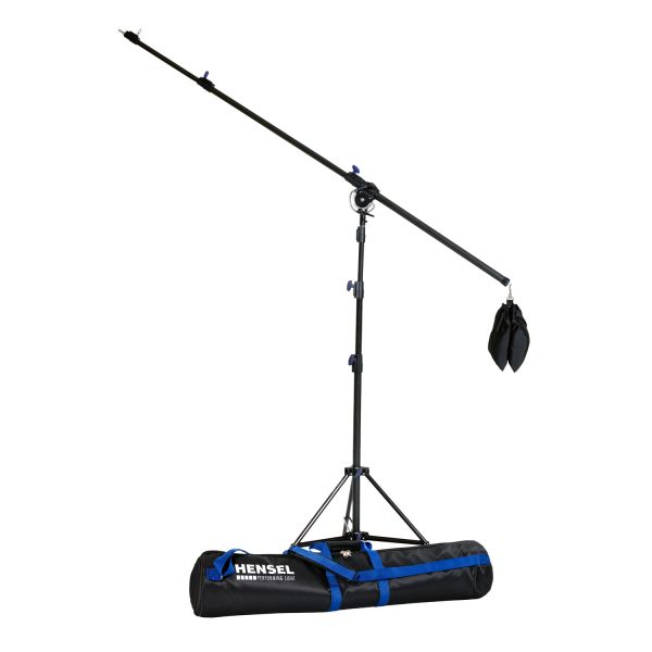 Dieses Kit besteht aus einem Hensel-Stativ VI (Art. 223), einem Galgenausleger 223 (Art. 800G223), einer Pivoting Clamp (Art. 9802100) und einem Sandsack (Art. 8000266), verpackt in der großen Stativtasche (Art. 3750).