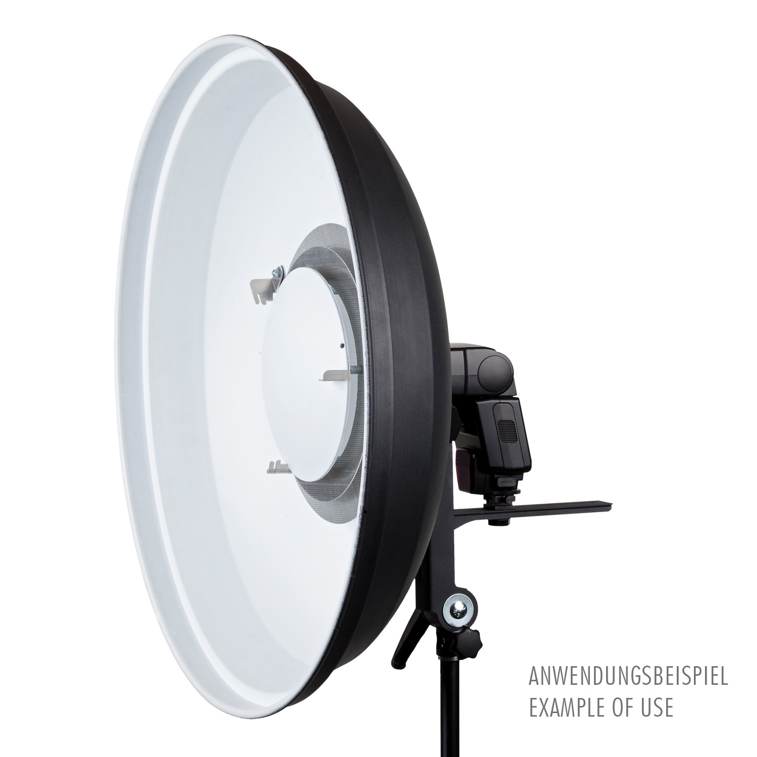 Entwickelt und gefertigt in Deutschland. Die Konstruktion erlaubt auch die Verwendung größerer Speedlights samt Funkempfängern.