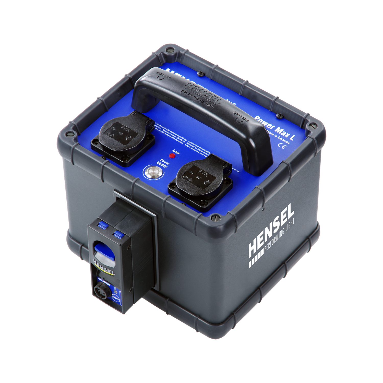 Der Power Max L wurde speziell für die aktuellen Kompaktblitzgeräte von Hensel entwickelt. Es lassen sich gleichzeitig bis zu drei Blitzgeräte der Serien Integra Mini und Integra Plus (insg. max. 2000 Ws) oder bis zu zwei Expert D anschließen. Außerdem ist es möglich, mit dem Power Max L einen Cito 500 zu betreiben. Eine intelligente Schutzschaltung verhindert eine Beschädigung der angeschlossenen Geräte.